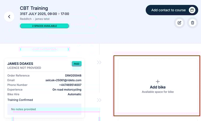 | ✅ 4. Confirm | Click “Add” to assign the bike |