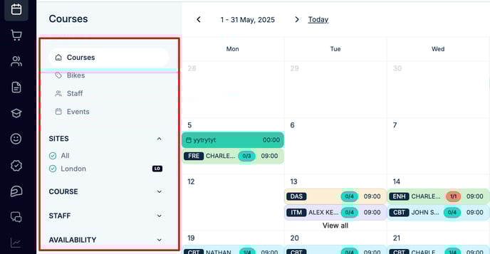 Filters allow you to swiftly identify instructor assignments and check whether sessions are open or fully booked, enabling you to act without delay.