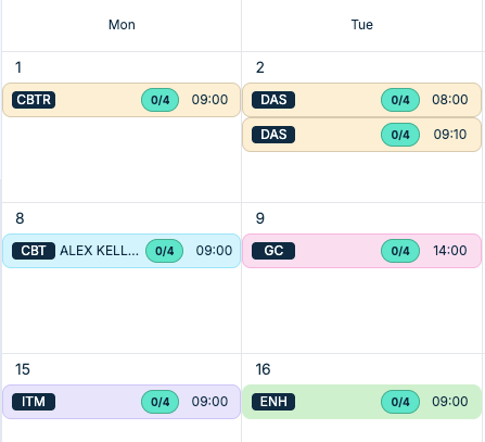 Color coding helps you quickly identify different course types in the calendar. This makes it easier to manage schedules and understand which courses are running on which days at a glance.