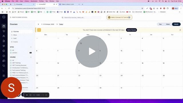 Keeping your course schedule up to date is key to maximising bookings—any course you add here appears instantly on RideTo.com and in your booking widget.